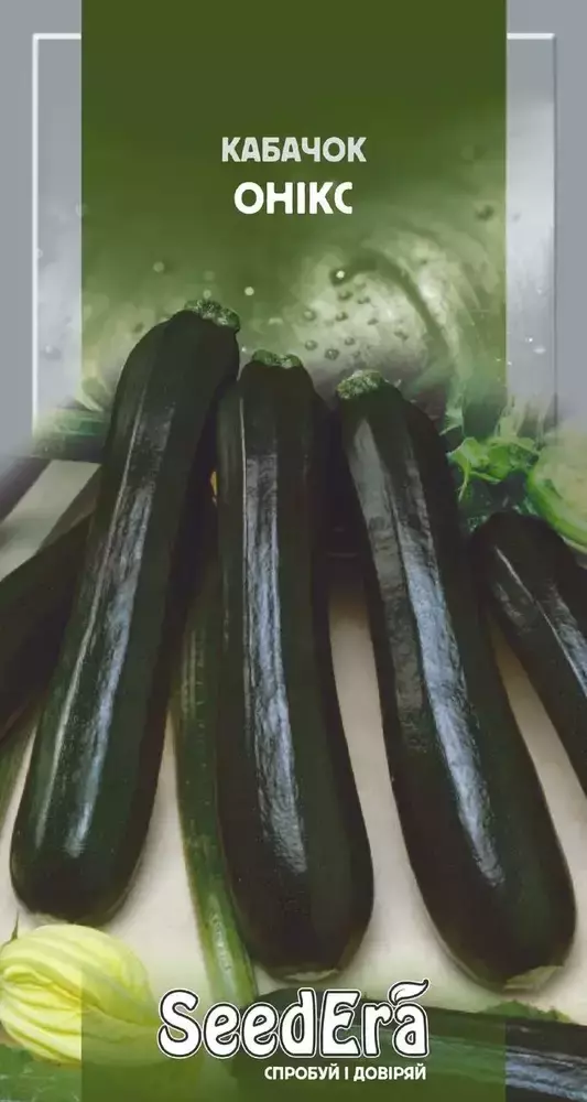 Цукіні ранній Онікс темно-зелений - опис: Ранньостиглий сорт з високими смаковими якостями. Рослина кущова, компактна. Плоди темно–зелені, булавовидної форми, гладенькі, масою до 1 кг. М’якуш світло-кремовий, солодкий, хрумкий, соковитий. Сорт транспортабельний, відносно стійкий до хвороб. Використовують молоді плоди для консервування і в домашній кулінарії.Оплата та доставка